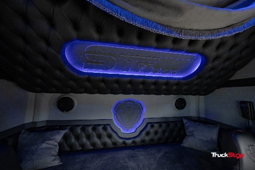 À l’extérieur, la liste des modifications s’allonge : calandre personnalisée, doubles ampoules, demi pare-chocs arrière, pare-buffle, enseigne spécifique… le tout monté avec l’aide de son mécano et de Scania Moulins. Le NextGen S590 adopte de son côté une approche plus moderne et fonctionnelle. Tôlerie et électricité confiées à Dutch Style Company, supervisé par Emeline Conte, Ambassadrice DSC. L’intérieur est signé W&G Truck Stoffering, peinture par Spuiterij Hommersom et aérographies par Kim Mae Airbrush. L’habitacle se veut plus sobre, plus robuste, et intègre deux couchettes, idéales lors des déplacements en salons avec sa compagne.