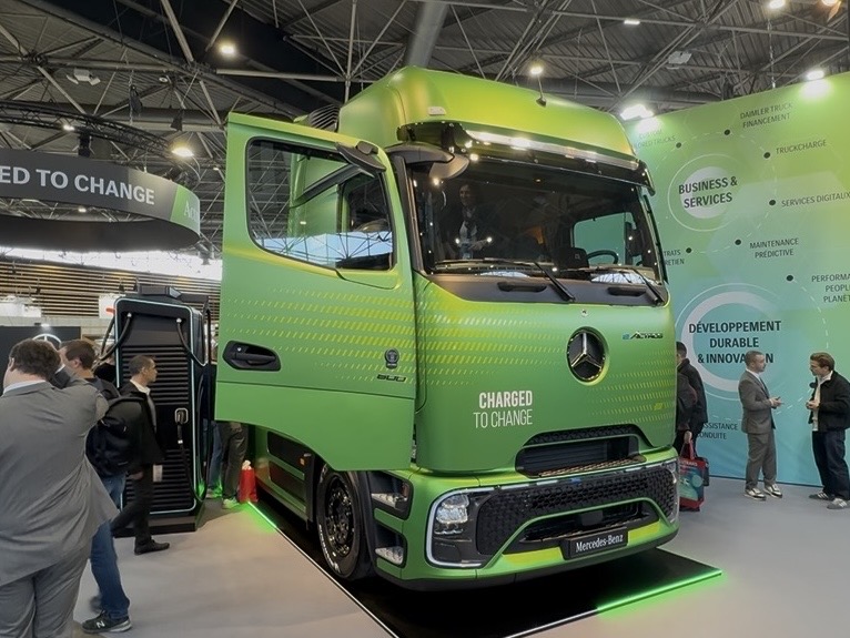 Cette année, le slogan est clair : « Un seul camion sur le stand, les autres sont sur la route ! » Comme en 2023, Mercedes arrive à Solutrans en mode sobre : pas de défilé de camions.