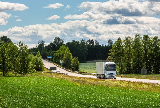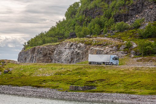 Afin de corser un peu la chose, nous l’avons fait en Volvo FH Aero 500 GNL, 4x2, tri-essieux chargé à bloc. Quatre jours : plein jour permanent, rennes au bord de la route, forêts infinies, stations GNL perdues au milieu de nulle part, et les plus belles routes de Scandinavie. Un défi de taille qui change du Diesel conventionnel !