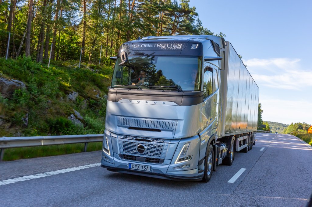 Départ du centre de démo Volvo Trucks, Göteborg. Une carte de l’Europe au mur, un trait au feutre… et on réalise le truc : la Suède fait 1 600 km du sud au nord et nous allons gentiment nous taper quasiment l’ensemble du parcours. À droite côté passager c’est Martin Tomlinson (Volvo UK & Ireland) qui nous briefe : « Le FH Aero 500, 95% GNL, 5% diesel juste pour l’allumage. 215 kg de GNL à bord, 140 L de diesel, 64 L d’AdBlue. » En gros : si on loupe une station, on finit en décoration au bord de l’E45. Les supermarchés anglais en raffolent paraît-il : Tesco, Asda… Maintenant que le prix du gaz est redescendu, les commandes repartent. Reste le vrai défi : trouver du GNL avant d’être à sec. Ici, chaque plein est une mission commando. Route limitée à 80 km/h. Asphalte nickel, comme du verre. Scène monotone : 70 milliards d’arbres, 69 % du pays recouvert de forêt. On jurerait que chacun d’eux a prévu de nous regarder passer. Mais ce que la nature ne donne pas en variété, les camions le rattrapent en style : tous nickelés, toutes marques suédoises, tous prêts pour un truckshow improvisé, ici c’est clair nous sommes au paradis des amoureux de camions. En Scandinavie même un simple bahut de chez DHL semble sortir de chez un préparateur.