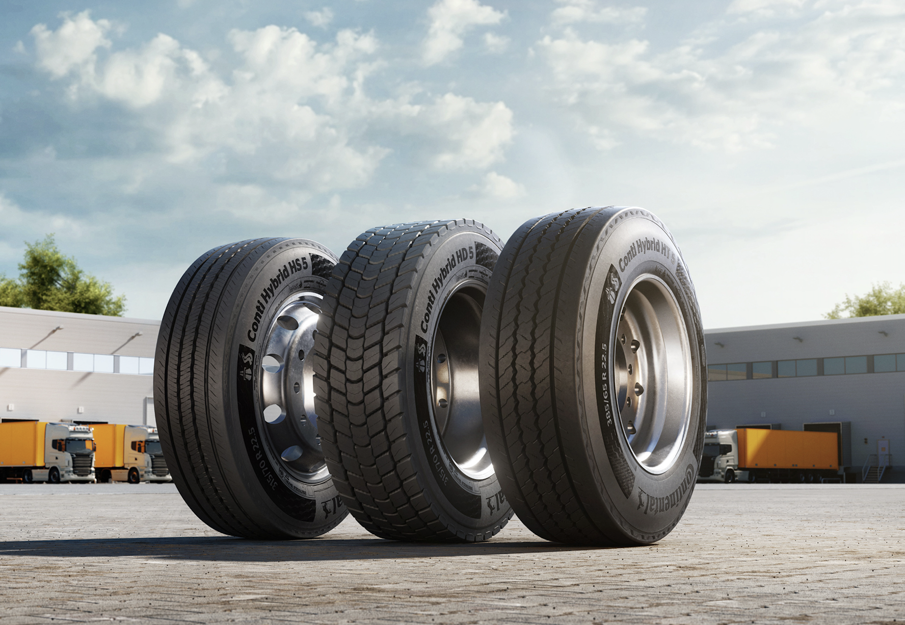 • Conti Hybrid HS 5 (essieu directeur) : précision et confort de conduite • Conti Hybrid HD 5 (essieu moteur) : motricité élevée et freinage équilibré • Conti Hybrid HT 5 (essieu remorque) : stabilité, robustesse et adhérence, quelle que soit la charge